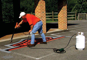 But Flaherty is more excited about what can happen when contractors get together and start sharing. “It is just amazing when you go out and work with people, and they start coming up with all kinds of ideas,” he says. “There is really not much we cannot do with thermoplastic.” Though there are some limitations about how small lettering or detail can be, the possibilities for design and application are endless.